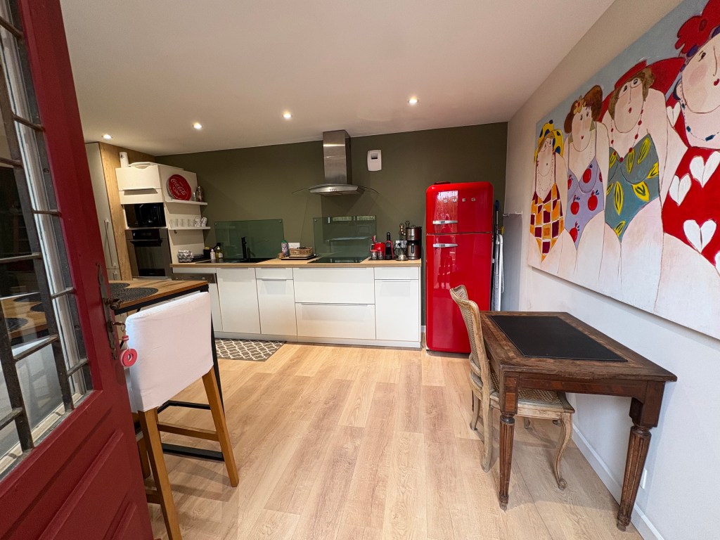 - Cuisine entièrement équipée : four, micro-ondes, machine à café, lave-vaisselle, etc