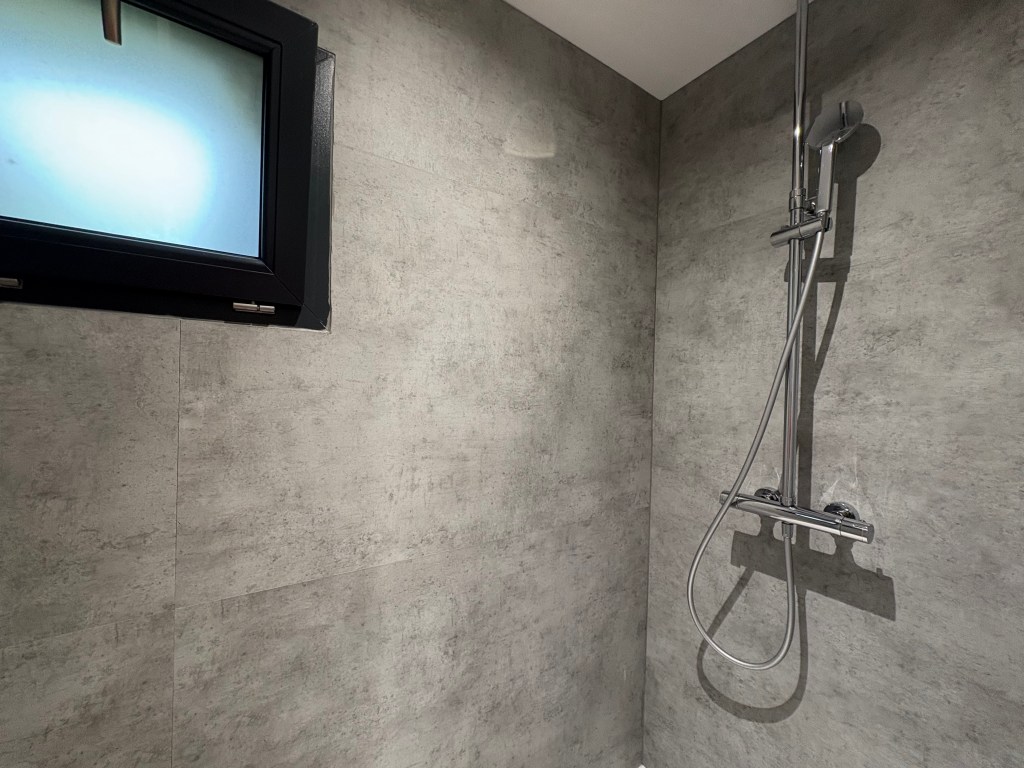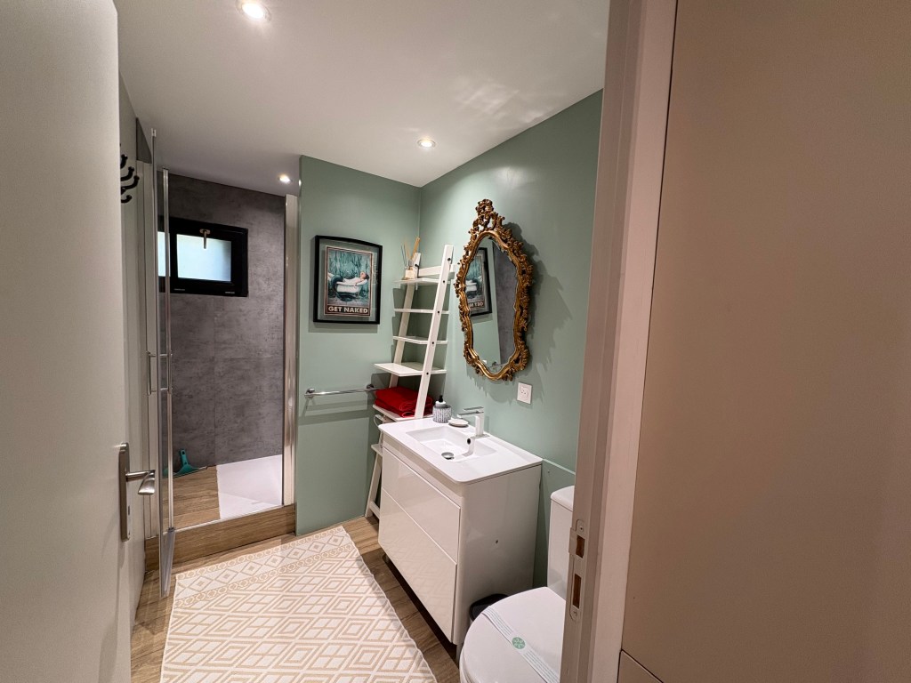 - Salle de bain moderne avec douche et WC